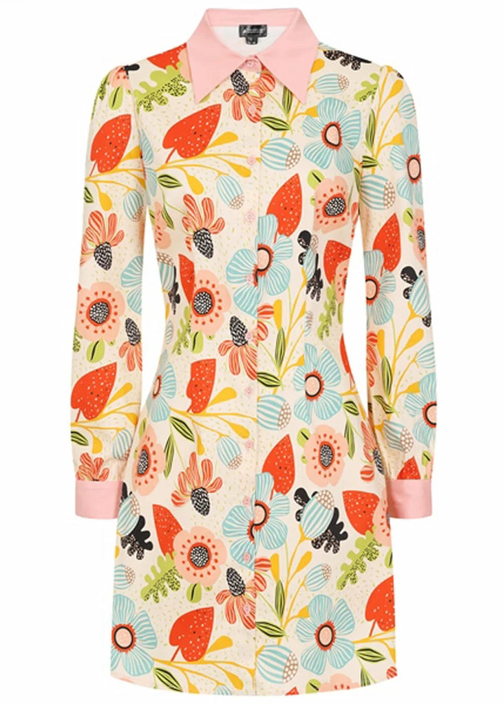 Annabelle is so veyr 60’s with her collar, long puffy sleeves and of course those smooth buttons that are also her way to close She is made from a nice cotton-mix with slight stretch. From the waist she flares just a bit and ends above the knee with a length of 1.70m.