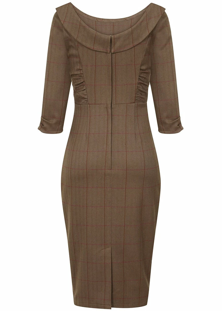 Collectif Cheyenne Herringbone 40’s Pencil Dress Brown