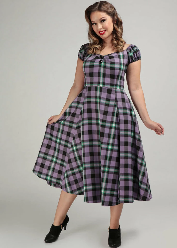 The Dolores dress is the classic by Collectif, now with a fresh tone of tartan!