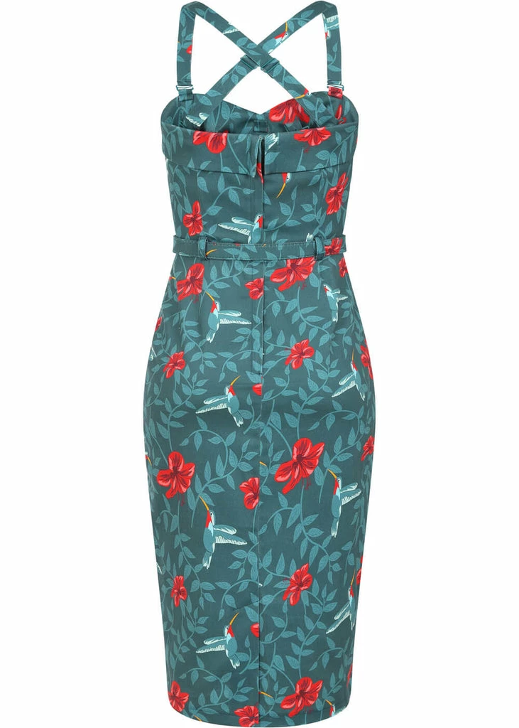 She is made of a beautiful lightweight cotton mix with a slight stretch and closes with a zipper and hook on the back. Throw on some bamboo accessories to achieve that ultimate tiki look, and a cocktail 😉