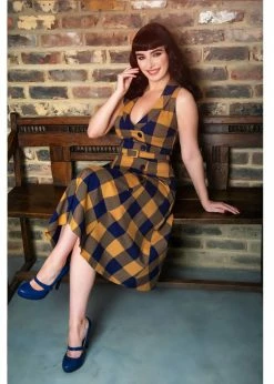 Sara is even more fun with her large navy-mustard gingham pattern!