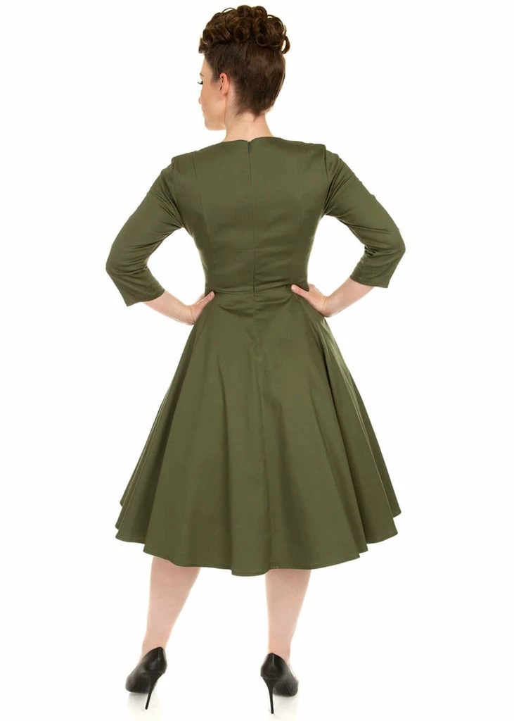 Hearts & Roses Angelina 50’s Swing Dress Khaki Green