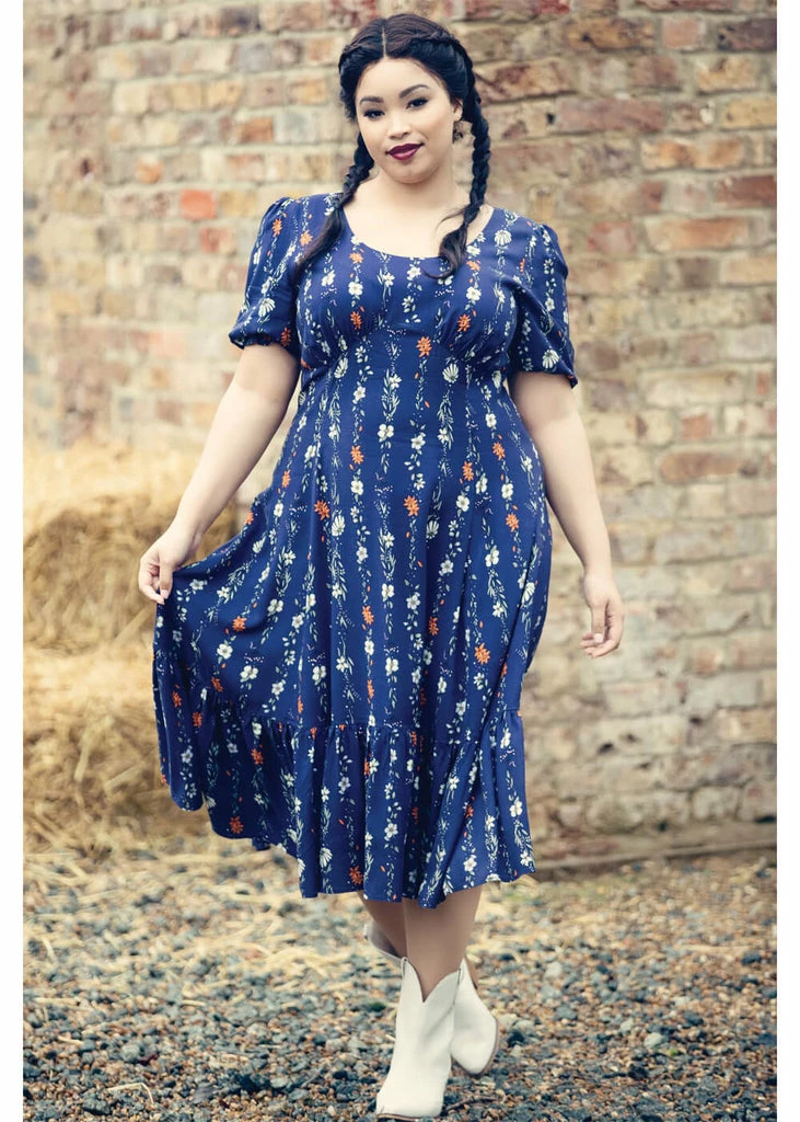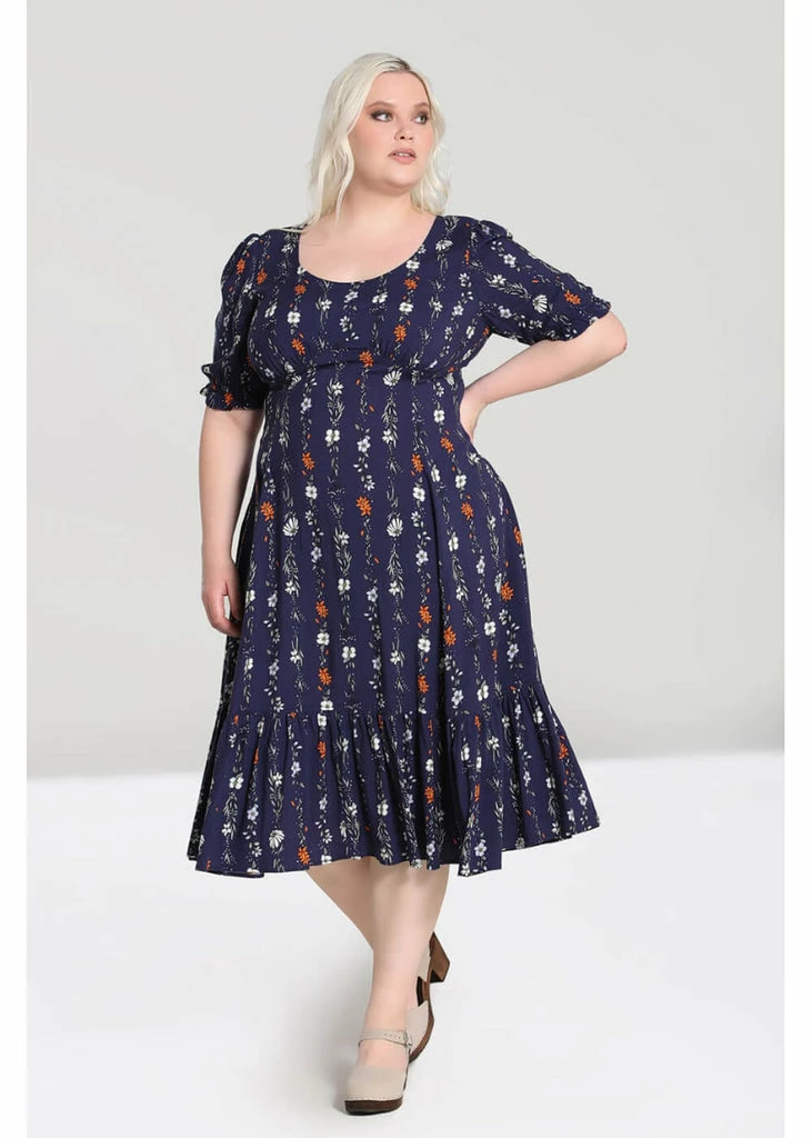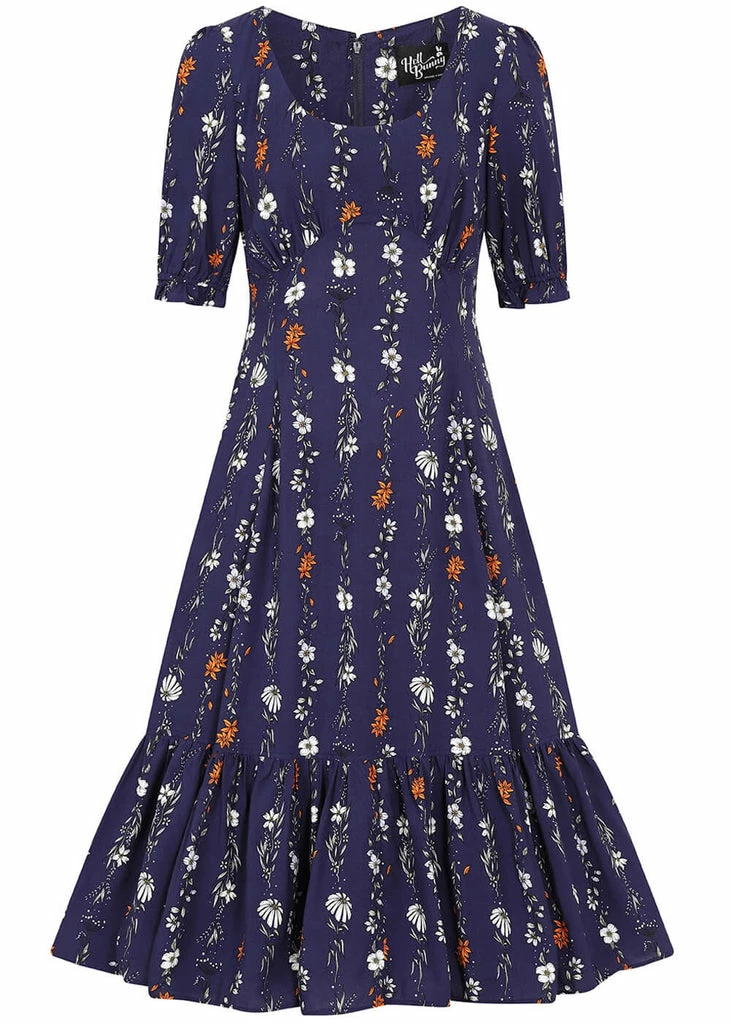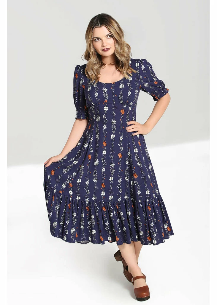 Hell Bunny Asta Floral 70’s Maxi Dress Blue