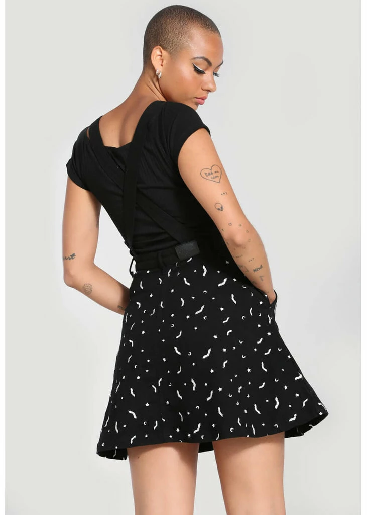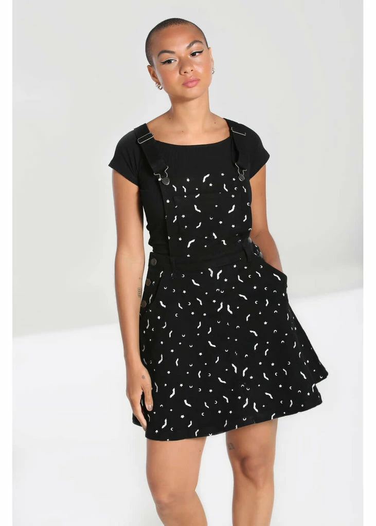 Can’t decide between a little spooky or a vintage look? The Bat Pinafore dress is the perfecte mix!
