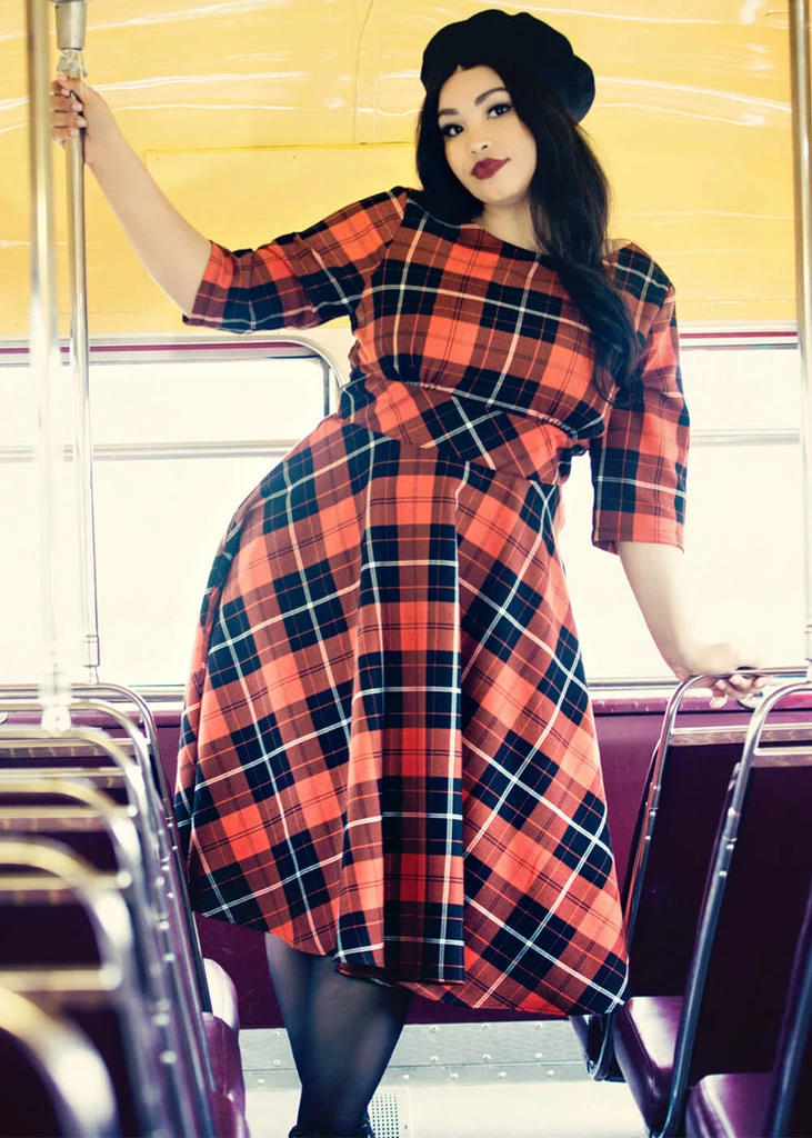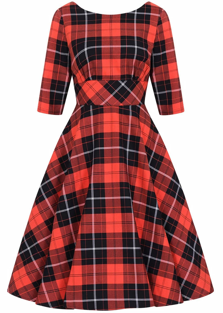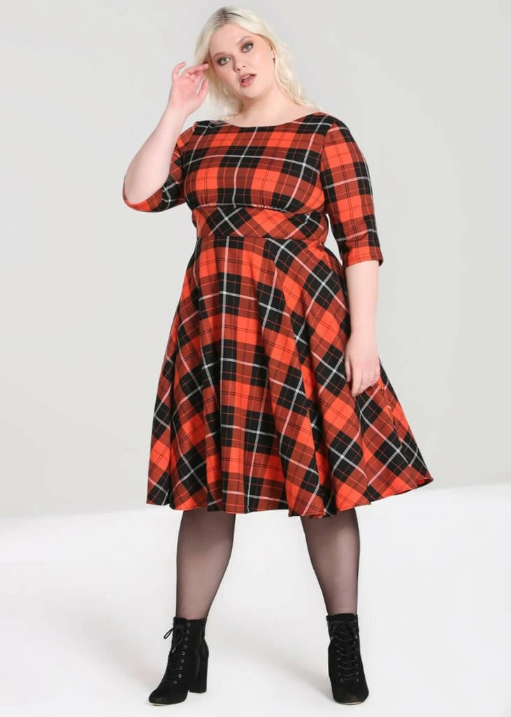Hell Bunny Clementine Pumpkin Tartan 50’s Swing Dress Orange