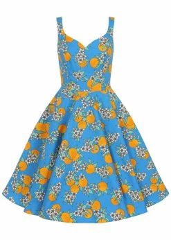 You can’t help but imagine you’re in tropical places because of the breathtaking oranges… This exotic cutie is made of an airy cotton-mix with a slight stretch which feels just as nice to wear as she looks. The bodice has a beautiful fit because of the seams. From just above the waist she flares out into a full skirt with pockets which you can gorgeously combine with one of our petticoats to make Kalani come to life.