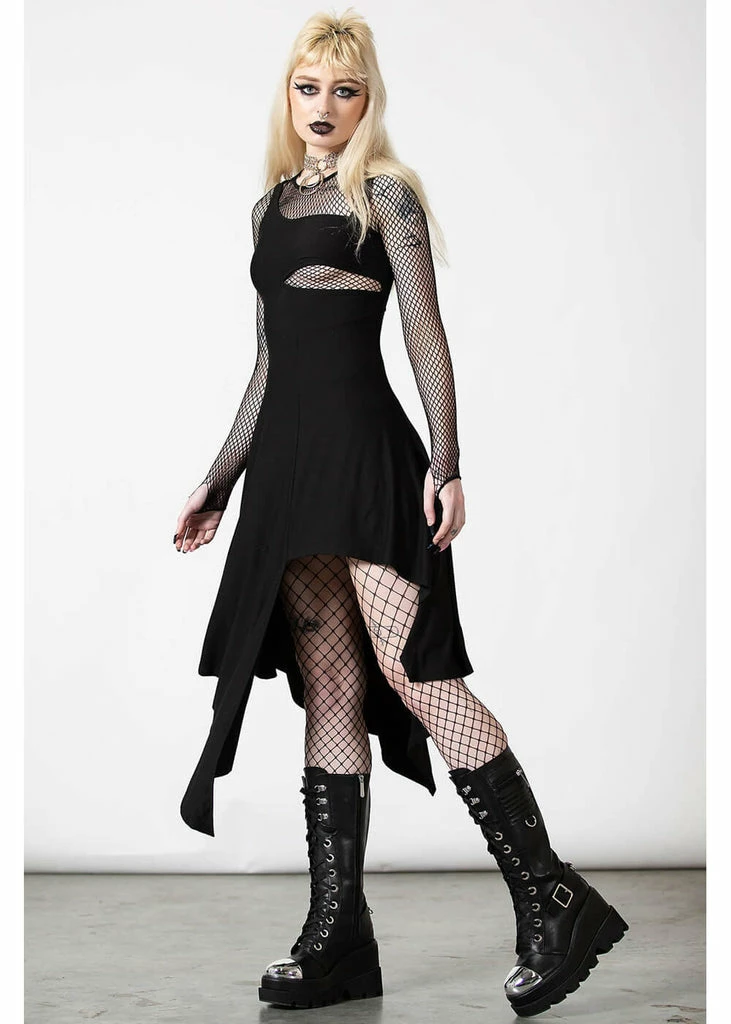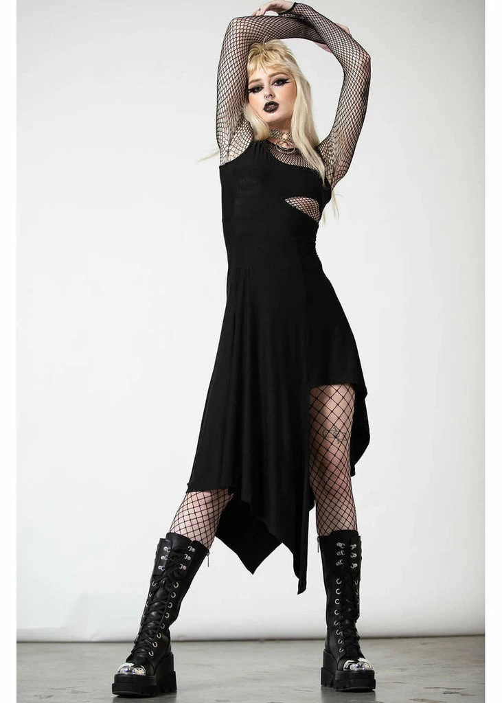 Killstar Corvia Bayonette Asymmetric Dress Black