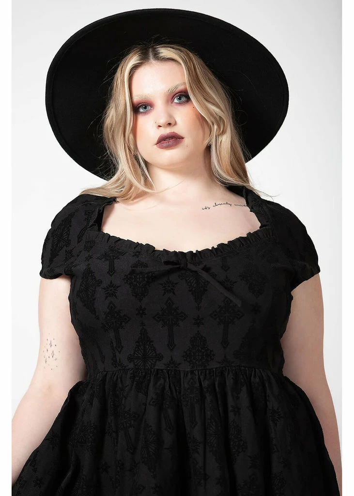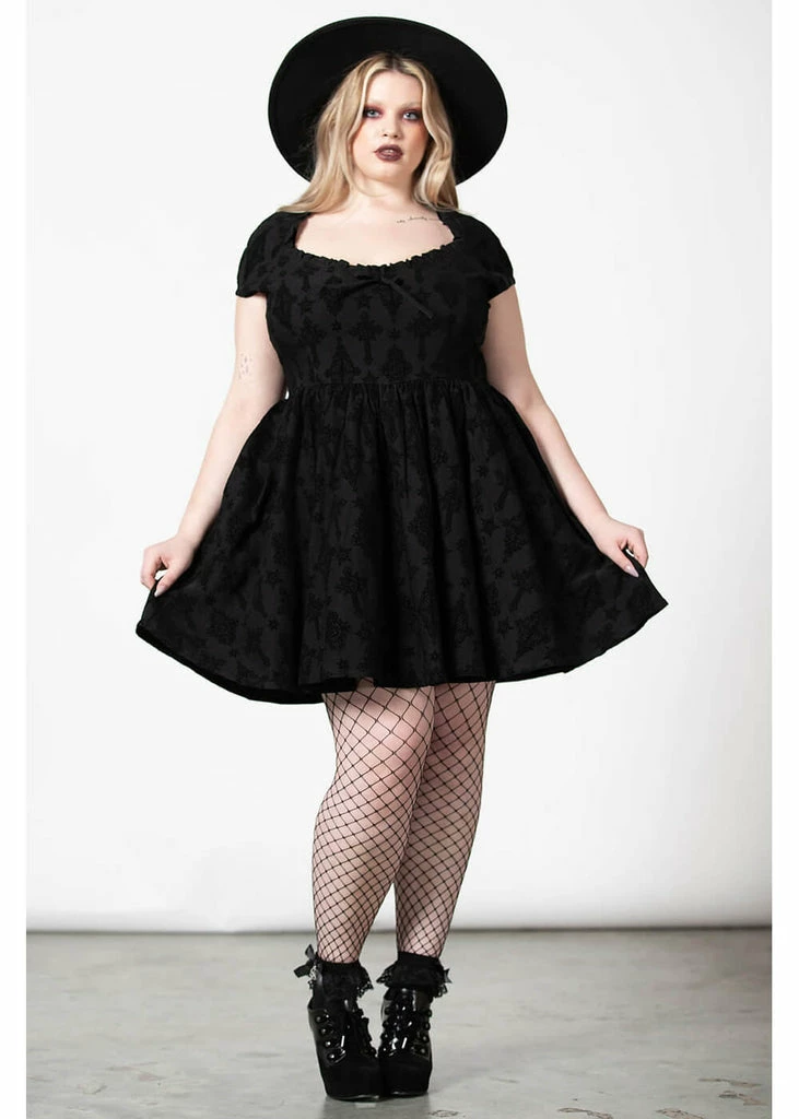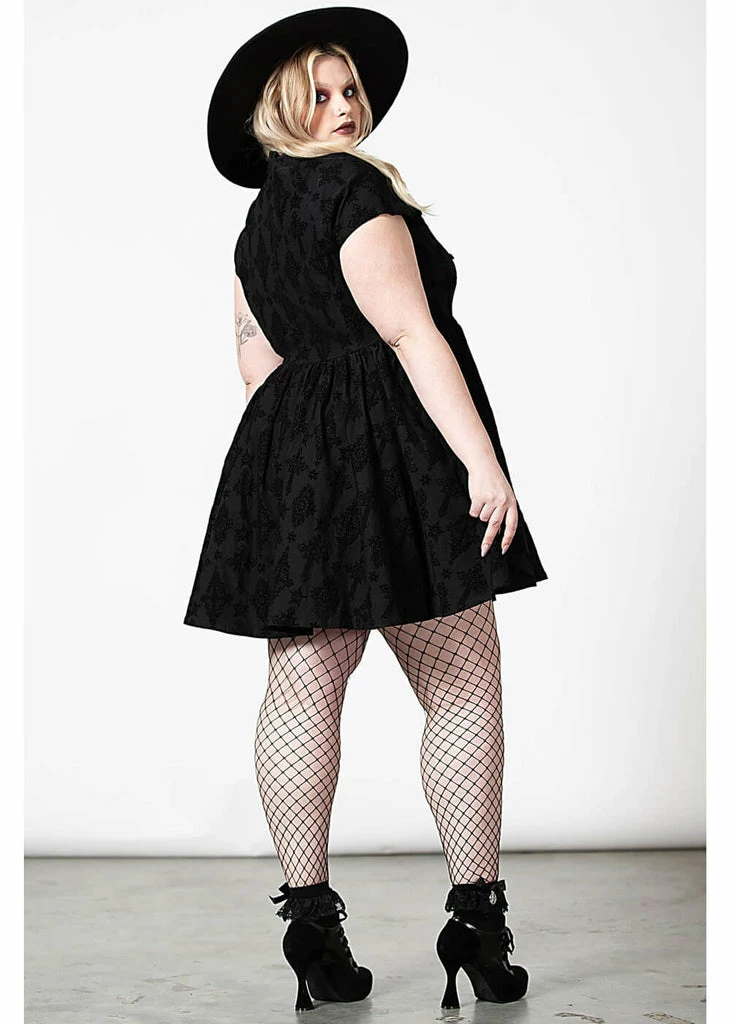 Killstar Crossed Chloe Flocked Skater Dress Black