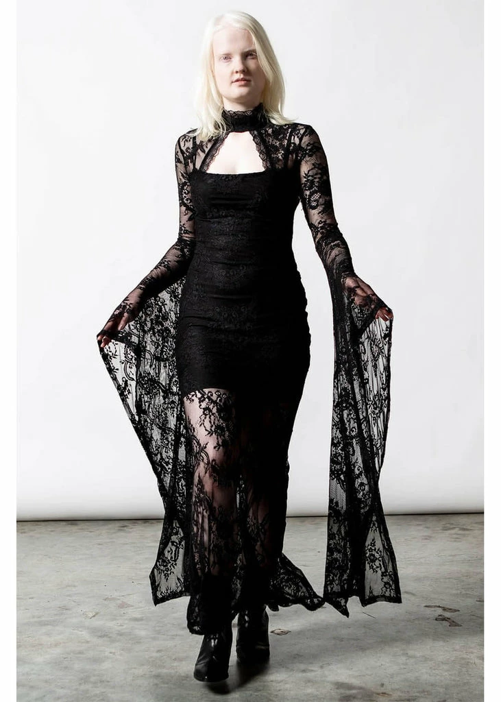 Killstar Phenemena Velvet Lace Maxi Dress Black