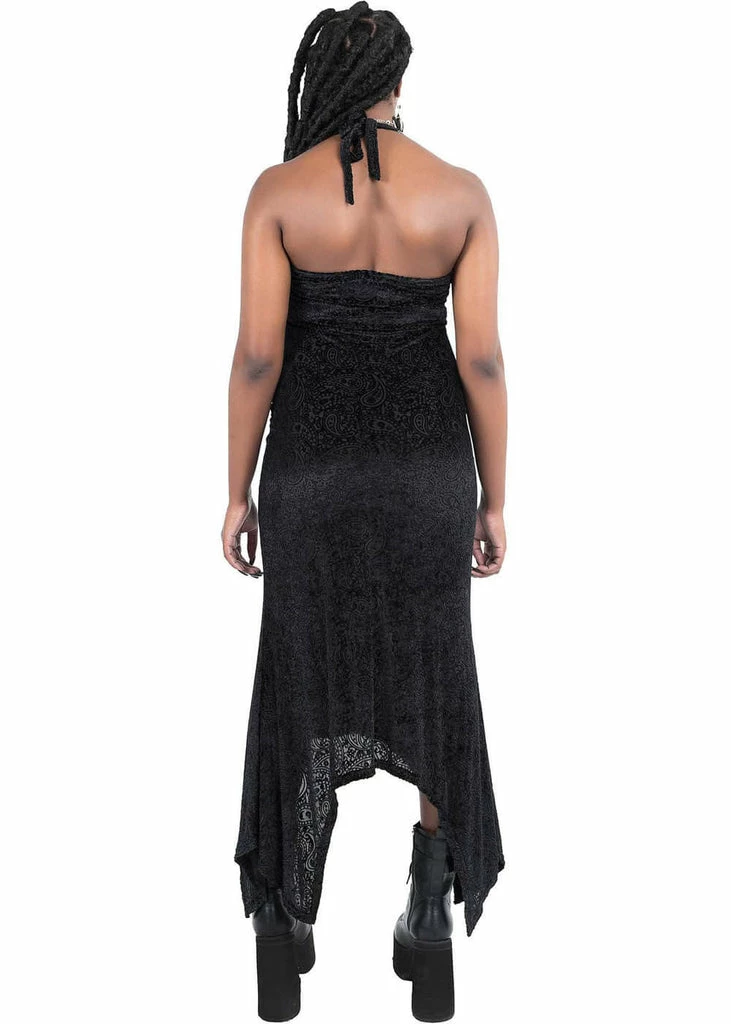 The top has a playful lacing at the chest and the straps are to be tied in the neck. From there, she falls Vavavoom closefitting until the hanky hem. For a height of 1.70m, the longest tips fall to the ground and you don’t need a zipper since you can simply slip in.