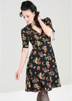 This gem is a joy to the eyes with her neckline, adorned with the bow detail. The bodice is nicely closefitting for a silhouette to bow down to, and she has gatherings underneath the chest for a classic 50’s look. This beauty is made of a high quality smooth fabric with fine stretch.