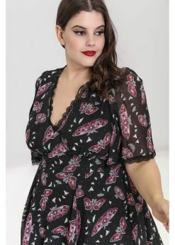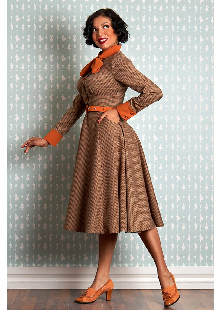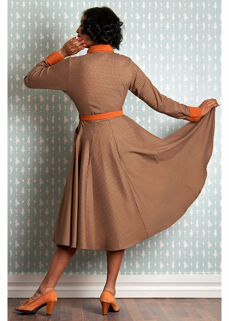 The waist is accentuated with the big waistband and the removable belt, before she flares into an elegant skirt with pockets. Stunning with one of our petticoats, but she’s just as gorgeous by herself. For a height of 1.70m, she ends below the knees and she closes with a zipper on the side.