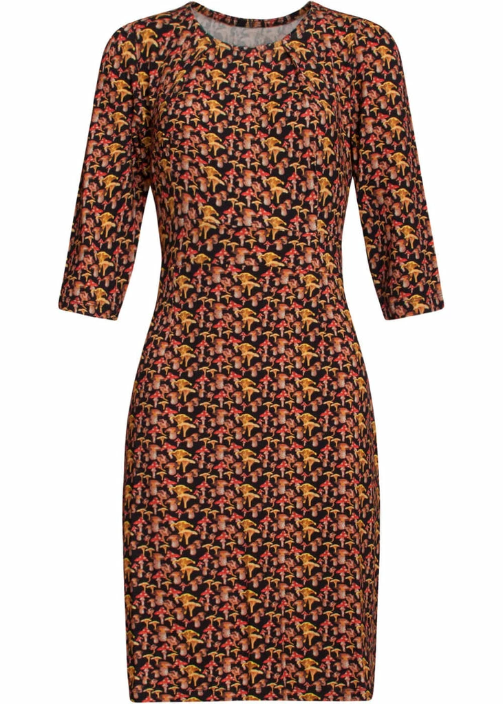 Smashed Lemon has the perfect autumn collection with her mushroom-print on a lovely stretchy viscose-mix. The round neckline has some flat pleats and she has 3/4 sleeves.