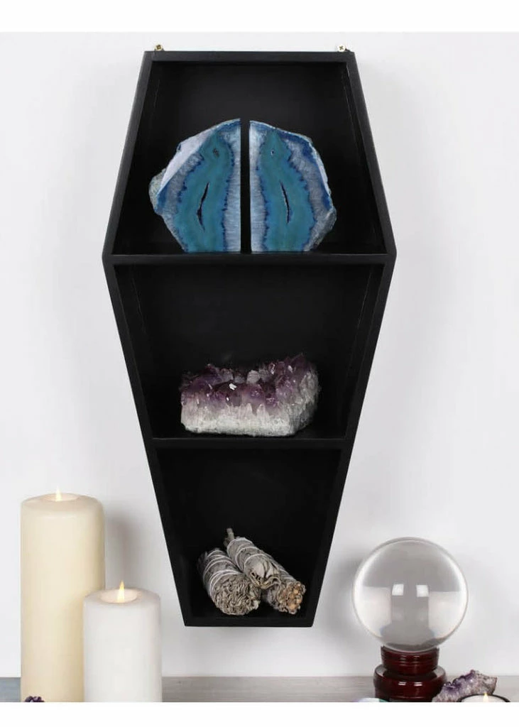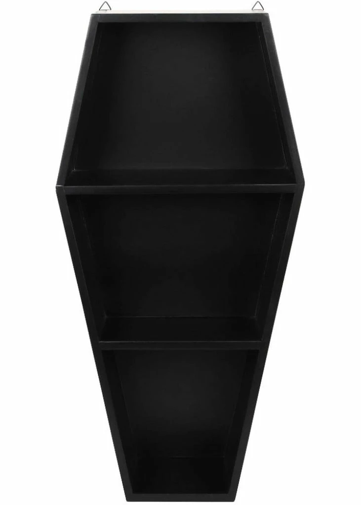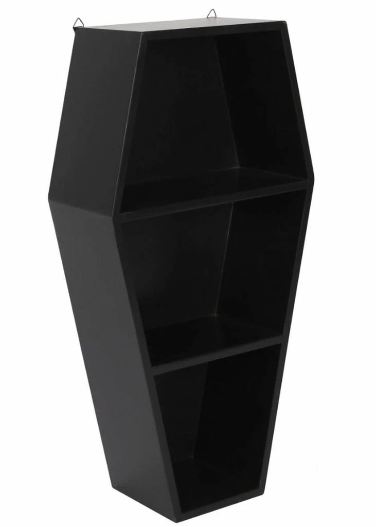 So hanging shelves in the shape of a coffin make sense! This cutie is made from pressed wood and is perfect for your little knick-knacks. On the back you’ll find hooks for safe hanging, where she is made for.