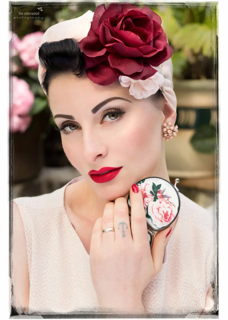 We can’t do without: a good mirror in our bag! This beauty has a normal side as well as a magnifying one. The microfiber outside has both sides showing the gorgeous artwork, which comes out perfectly thanks to the silver coloured kiss-lock.
